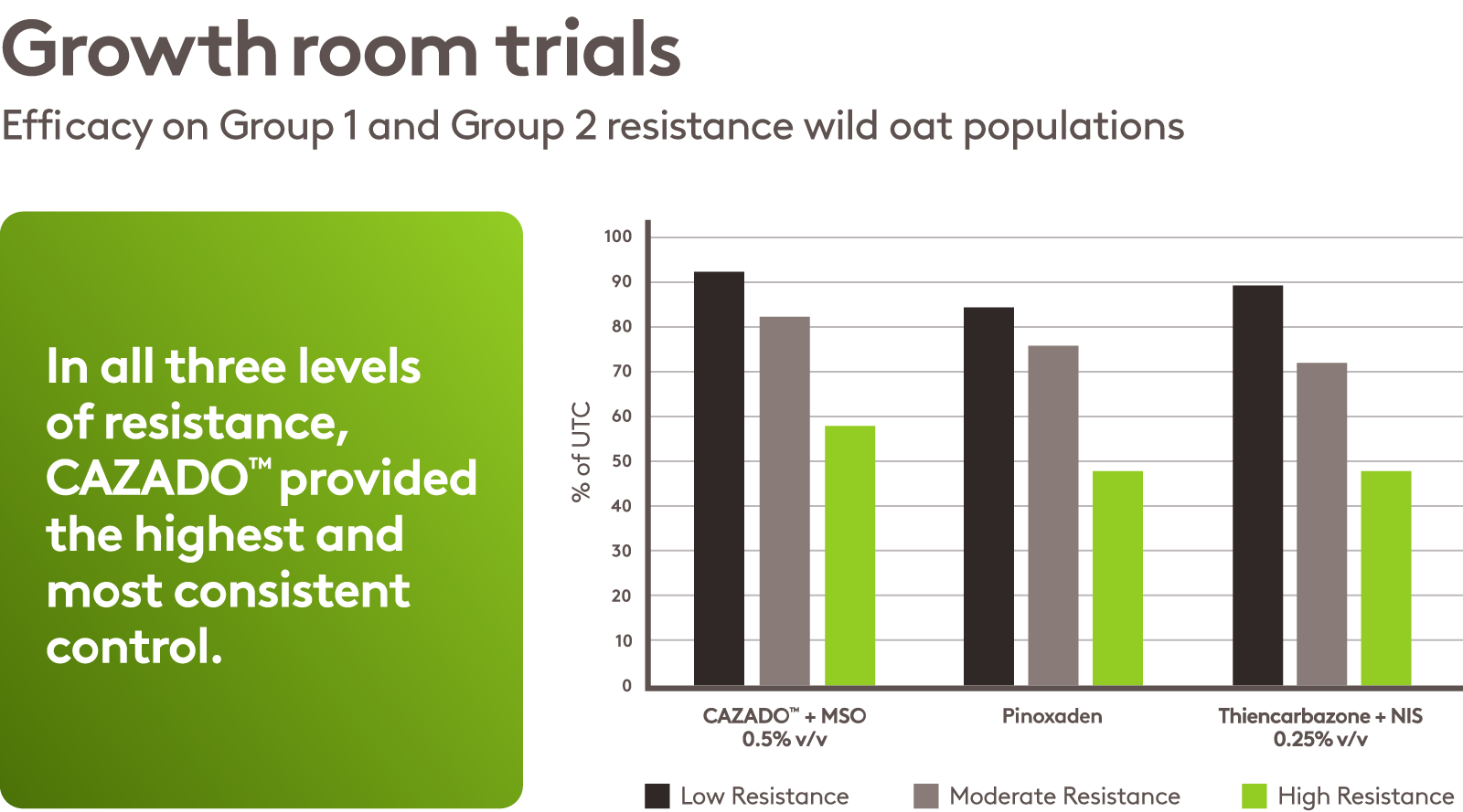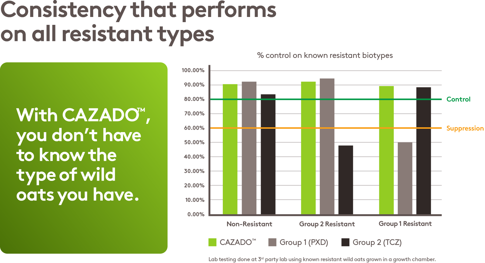 Now’s the time to choose the wild oat solution that puts you ahead from day one. CAZADO™ brings two proven actives together at full rate, delivering the most complete control ever seen on Group 1 and Group 2 resistant wild oats in wheat.
